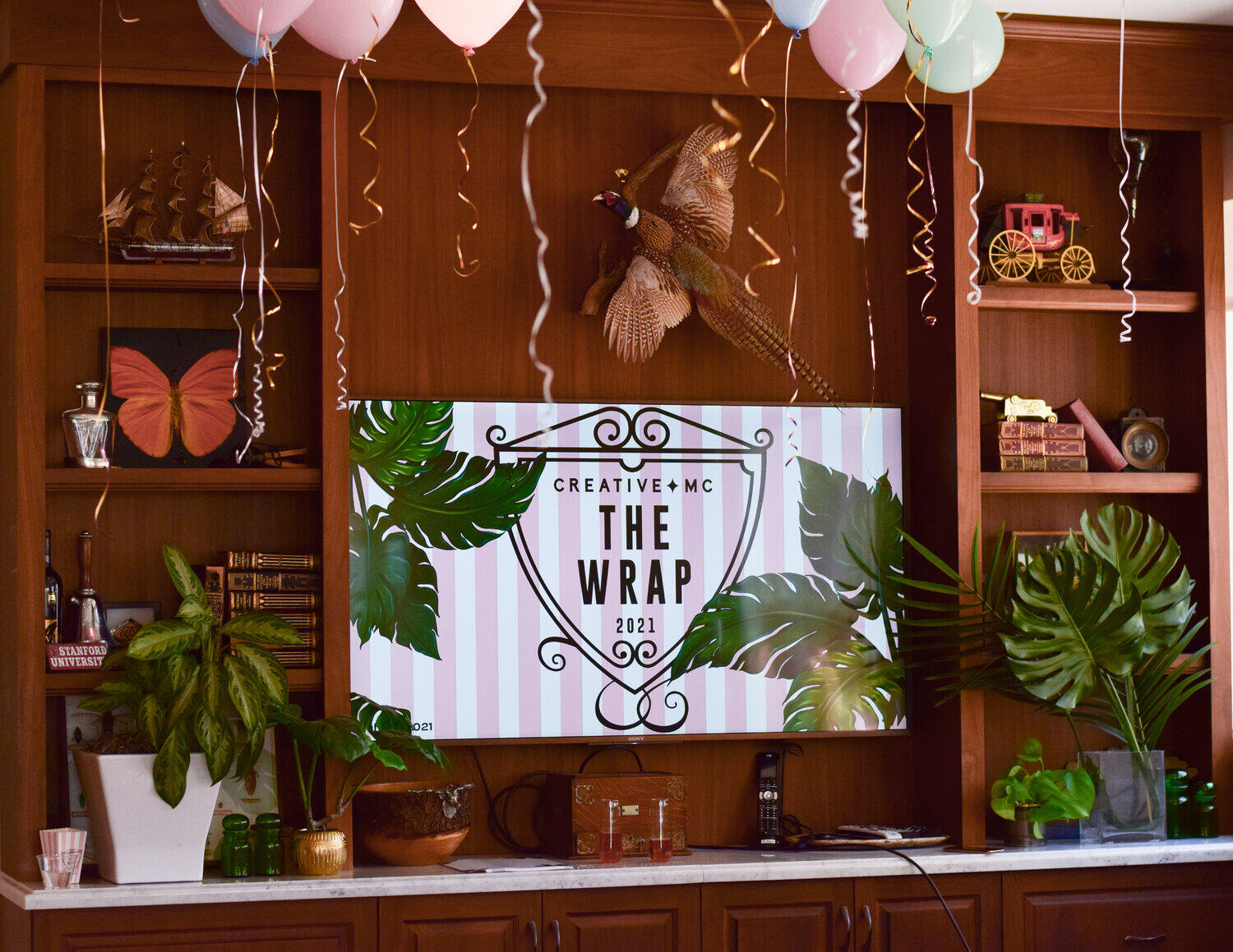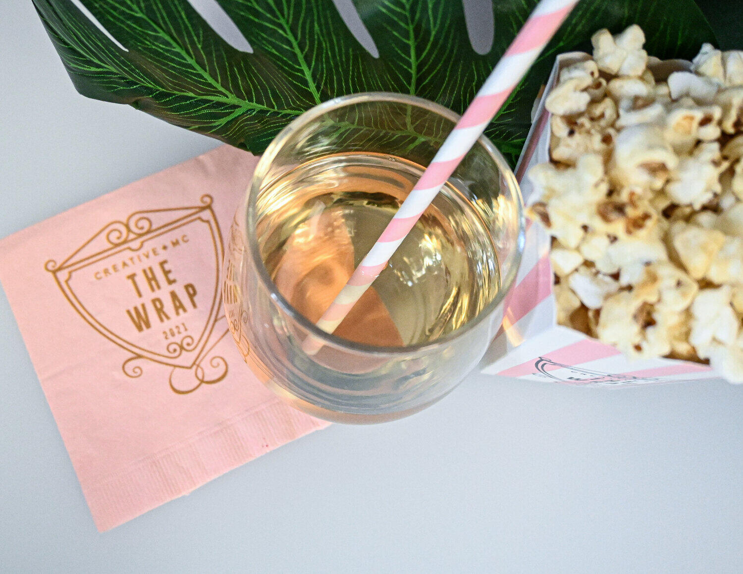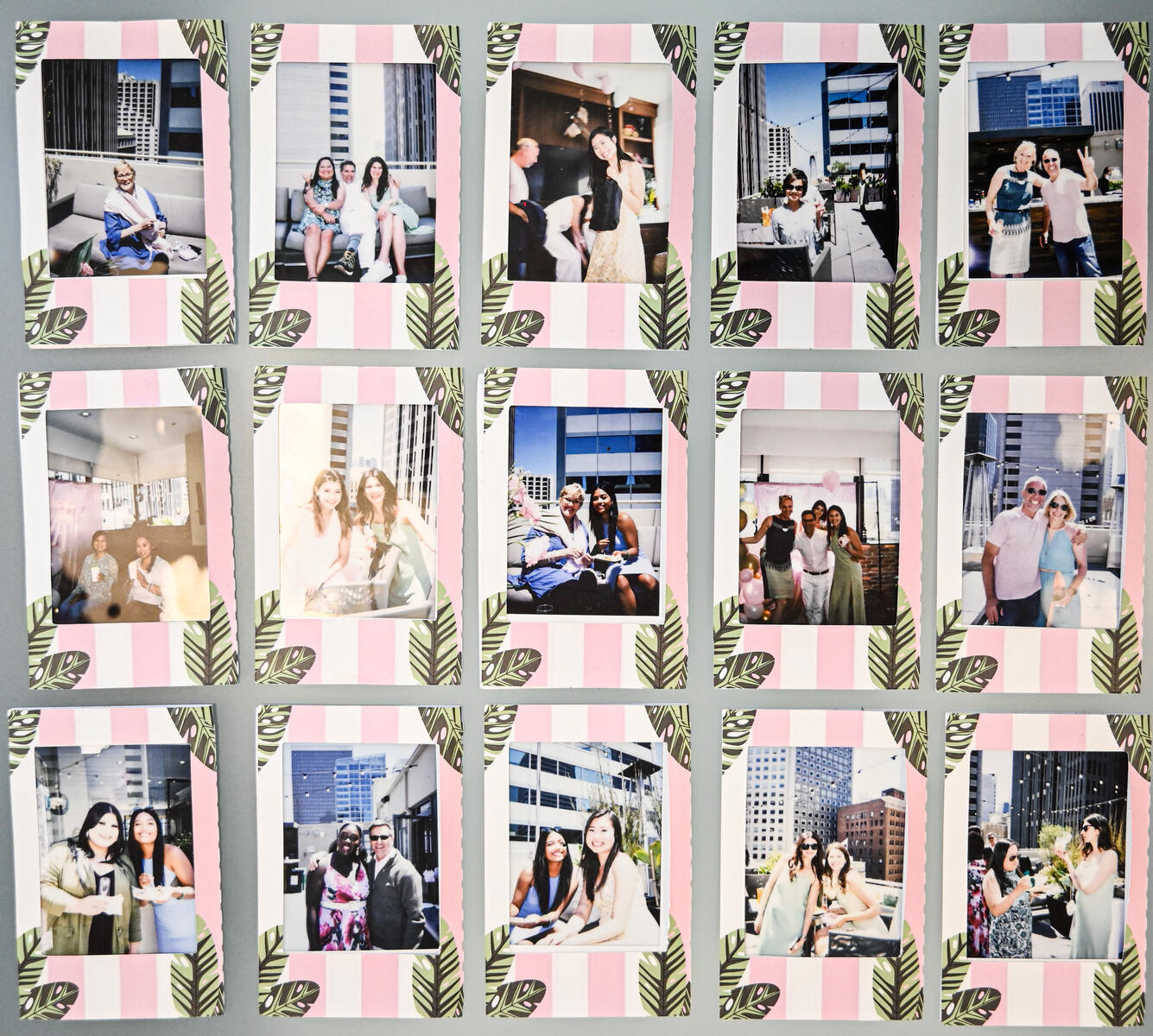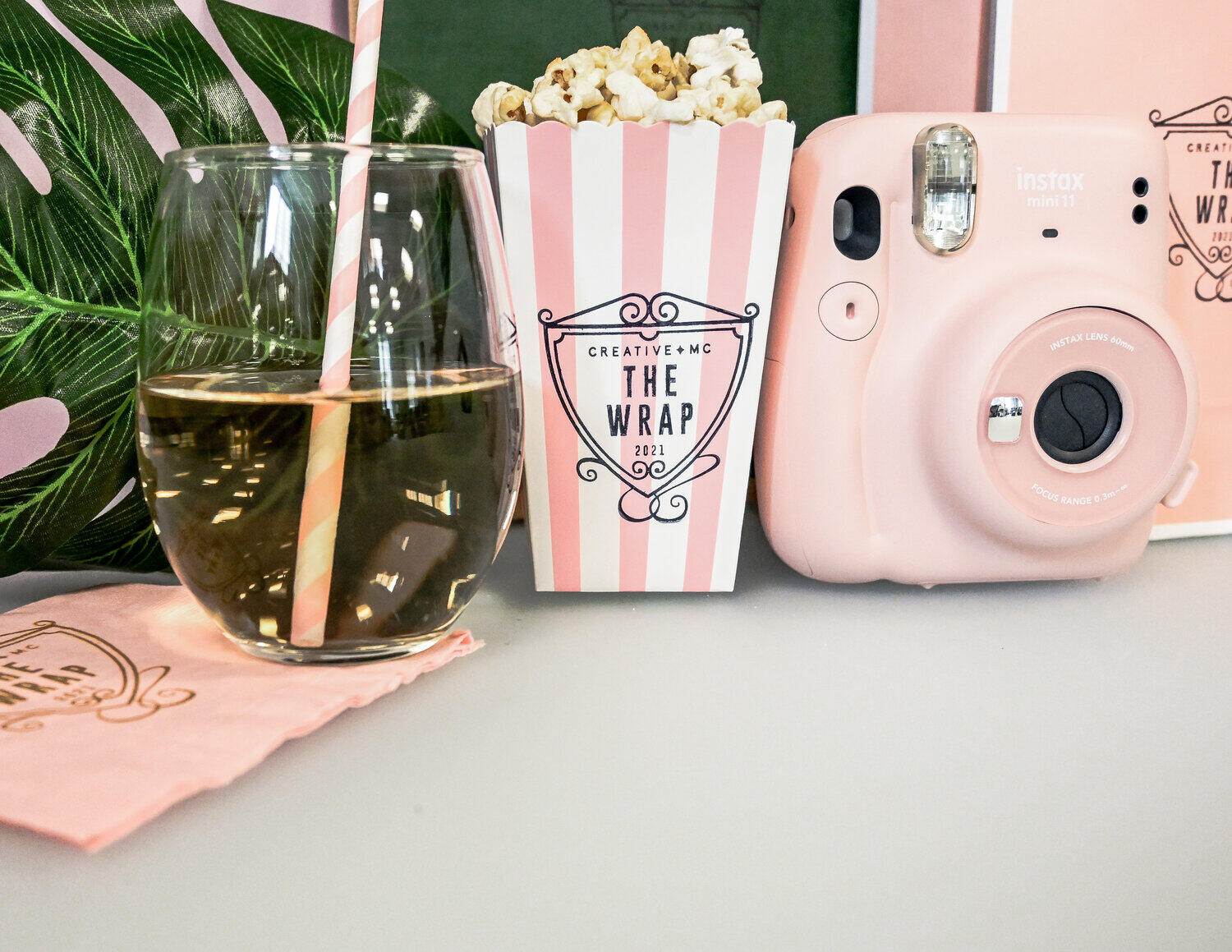 In line with the theme and color palette, we decided to gift employees with customized pastel Instax Mini Cameras and packaged them in branded bags and striped tissue paper. The custom merch selection added to the event experience, as attendees were able to snap the afternoon away and take home their own event memories. In addition to cameras, we also produced custom frames to be used with the polaroid pictures. A perfect client gift idea, on their way out of the venue, attendees took home their own Drinque Glasses adorned with THE WRAP after enjoying cocktails made by Salt & Honey Creations. Overall, it was a gorgeous sunny day for an unforgettable rooftop celebration for our team!