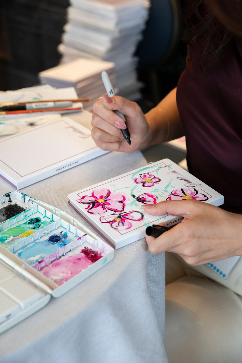 In addition to browsing the highly coveted custom merch above, clients enjoyed a creative break with a live illustration experience showcasing unique artwork hand-painted on each of Chameleonlike’s goodie bag Gratitude Journals by local artist Caroline So.