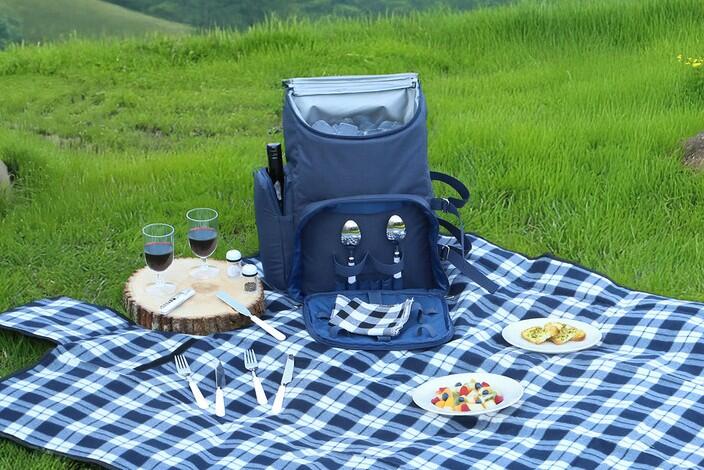 19. Elevate offsites, outdoor meetings, or laid-back lunches in the park with sturdy and stylish Dolores Pack's Picnic Pack for Two. It features a quilted flap, contrast leather straps, and a full place setting inside.