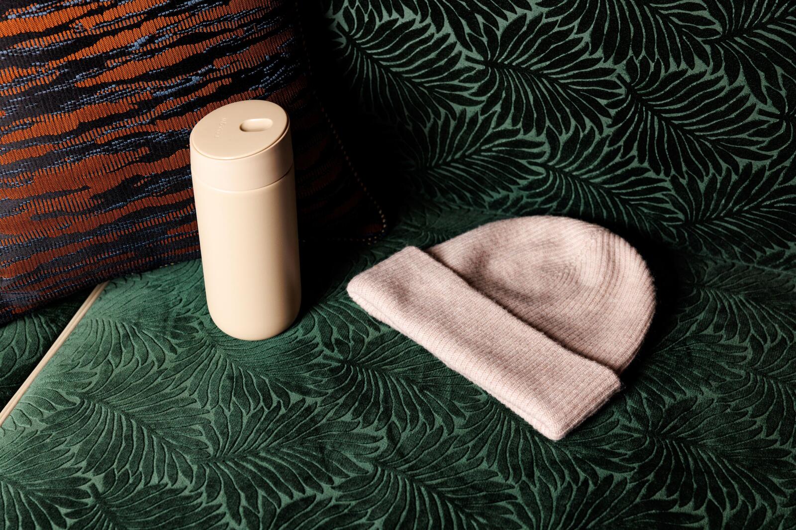 Elevate off-duty hours with comfort and cool combined in one thoughtful gift pairing. The Fellow Carter Slide Travel Mug keeps beverages perfectly balanced, while the Original Favorites Oat Cashmere Beanie adds a hint of cold-weather luxury.